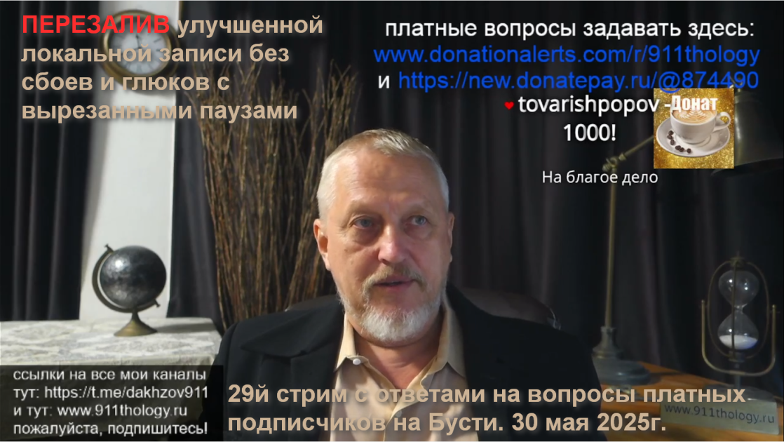Стрим №29 на Бусти с ответами на вопросы в режиме живого общения. 30 мая 2025г. Шел три с половиной часа. ПЕРЕЗАЛИВ локальной записи!
