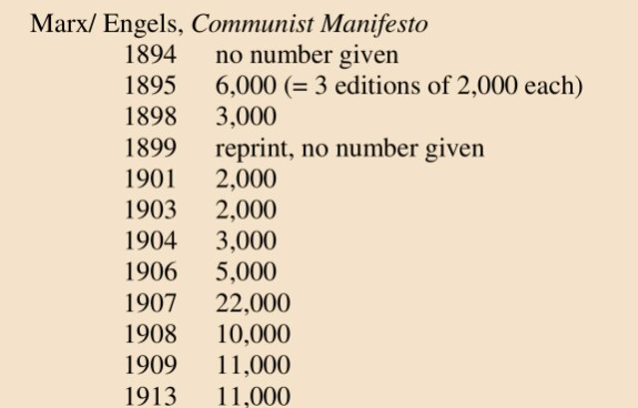 Единственная работа Маркса и Энгельса, которая пользовалась безусловным успехом. Суммарный тираж в 1890-1914 гг превысил 100 тыс экземпляров.