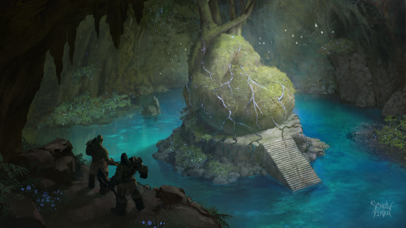 На третьем арте изображено сердце острова, которое буквально бьется и сотрясает стены пещеры в котором оно спрятано.