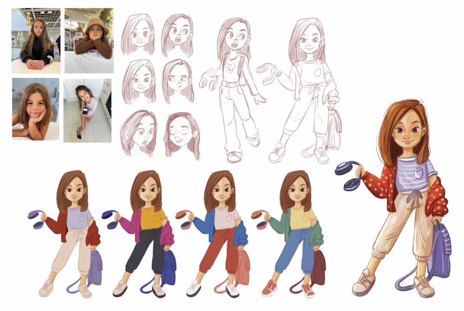Была выбрана стратегия научить команду работать иллюстраторами. И они ушли думать над макетами, над шрифтом над текстом и над расположением иллюстрации. И ещё один момент который нужно оговаривать чтобы все файлы и всё описание было в одном месте. В моем случае получилось что часть иллюстрации и фотографии WhatsApp другая часть Telegram а третья часть в заметках и чтобы найти и и совместить все компоненты нужно открывать кучу окон и перелопатить всю информацию это сложно и так делать не нужно. Поэтому сейчас я работаю над персонажами и жду когда мне выдадут макеты с полным описанием иллюстрации которые должны быть на страничках.