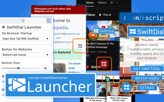 Launcher can also add a customizable button for opening a new SwiftDial tab on all sites you visit.