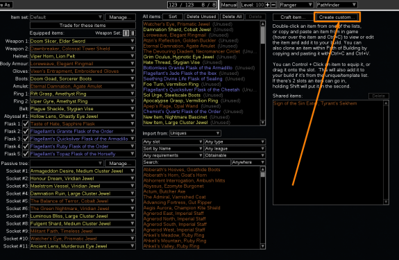 2. Далее в POB жмём Create custom внутри вкладки с предметами.