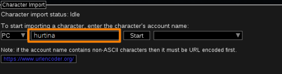 Для импорта готового билда из любого (не закрытого) профиля необходимо ввести название аккаунта (оно отображается сверху слева на сайте или под аватаркой в профиле).
