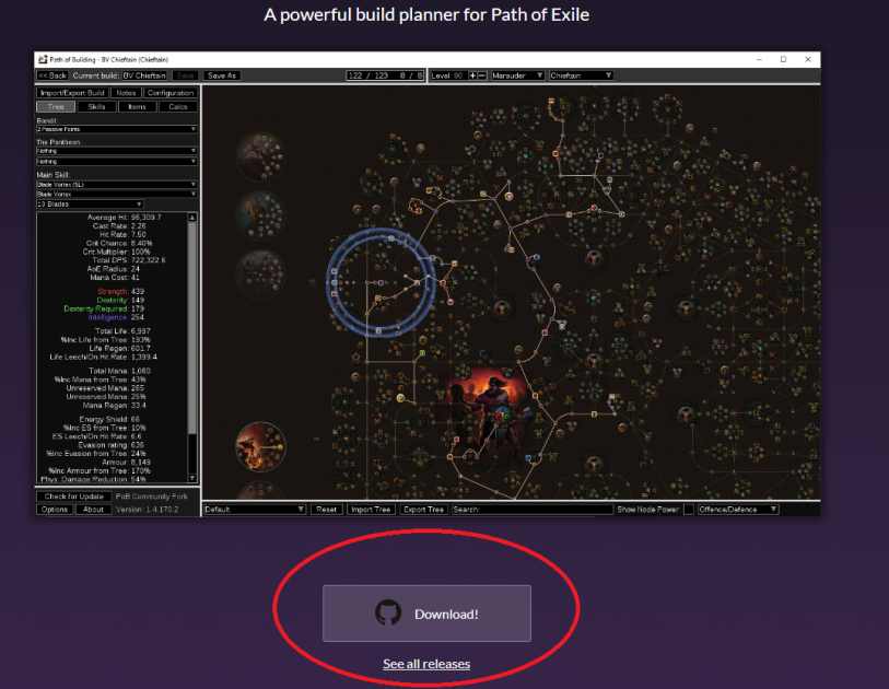 Программа Path of Building (POB) создана для удобного планирования ветки умений, вещей, точного расчёта реального урона и защитных механик.